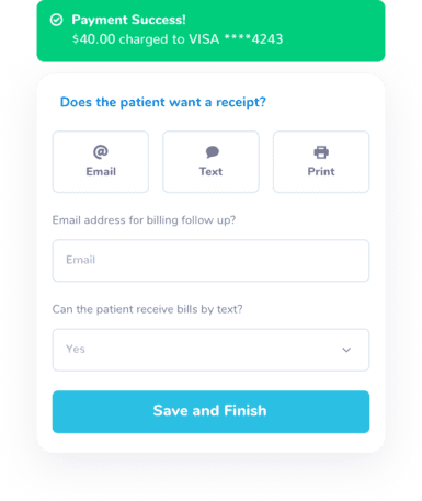 Bill and communicate with patients via text, email, paper statements or a mix of all three. Our built-in algorithms will help make suggestions, but you and your patients are in control of which format they prefer. Happier patients pay faster!